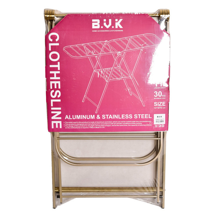 امروزه با توجه به فضای کوچک خانه ها و لزوم خشک کردن لباس ها و دستمال های نظافتی خانه، فضایی برای نصب بند های ثابت قدیمی نیست“بند رخت بی وی کی با قابلیت جمع شدن محصولی کاربردی برای تمام خانه هاست. این محصول در حالت جمع شده کمترین فضا را اشغال می کند. به راحتی باز می شود و دارای 22 میله برای پهن کردن لباس در اختیار شما قرار می دهد.جنس این محصول آلومینیوم- استیل می باشد.