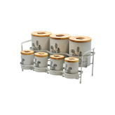 ست جا ادویه و پاسماوری دارای طرح های کلاسیک و مدرن است.این محصول خاص میتوان برای انواع ادویه جات ،شکر،قند و....استفاده نمود.تنوع رنگی این محصول زیبا می باشند و این ست 8 پارچه دارای3 عدد بانکه ، 4 عدد جای ادویه، 1عدد استند می باشد.