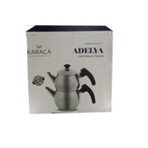 یکی از برندهای معروف و محبوب در زمینه لوازم منزل و لوازم آشپزخانه برند کاراجا می باشد که در کشور ترکیه مشغول تولید محصولات خود می باشد. این محصول متفاوت از نظر طراحی و زیبایی نسبت به دیگر محصولات موجود در بازار توانسته در مدت بسیار اندکی مشتریان زیادی از ترکیه و اروپا جذب خود نماید، این کتری قوری باکیفیت و زیبا از استیل ضدزنگ نیکل - با روکش کروم 18/10 مرغوب ترین نوع استیل میباشد که از نظر دوام و کیفیت استیل بی نظیر بوده و مادام العمر کیفیت خود را حفظ می نماید. دسته های این محصول شیک و بینظیر از جنس باکالیت که کاملا عایق نچسب و نسوز می باشند تولید شده است. با این محصول دیگران نگران استفاده از کتری و قوری داغ روی سفره، پلاستیک و چیزهایی که گرما به آن آسیب می رساند نباشید، چون پایه چوبی قرار داده شده روی این محصول این مشکلات را برطرف نموده است. کتری این مجموعه دارای درب ایمنی مخصوص می باشد که با برش هایی به منظور تخلیه بخار طراحی شده است که هنگام برداشتن قوری فنر امنیت موجود روی درب از بخار داغی که ممکن است دست و صورت را لمس کند جلوگیری می کند، وقتی قوری دوباره سر جای خود قرار گرفت ، تخلیه بخار به طور خودکار شروع می شود و اطمینان حاصل کنید که چای شما با طعم دلخواه دم می شود. پوشش بخار باعث کاهش 90 درصدی مصرف انرژی می شود و اطمینان حاصل می کند که هم آب کتری شما و هم چای قوری داغ است. به لطف صافی های موجود در قوری و کتری ، می توانید چای های خوشمزه را در مدت زمان بسیار کمتری بدون نیاز به صافی اضافی دم کنید. این کتری و قوری لاکچری برای استفاده روی کلیه اجاق های موجود در بازار مناسب می باشد. کتری 2.0 لیتر و قوری 1.2 لیتر ظرفیت را دارا هستند که در نوع خود عالی می باشند.توانست به سرعت خود را در میان برندهای معروفی که در ترکیه در حال فعالیت می باشند مطرح سازد.این برند پای خود را فراتر از کشور ترکیه نهاده است و در بسیاری از کشورها همچون فرانسه، آلمان، هلند، اکراین، اتریش، هلند، بلژیک و… با زدن نمایندگی و فروشگاه به عرضه محصولات خود می پردازد. ...