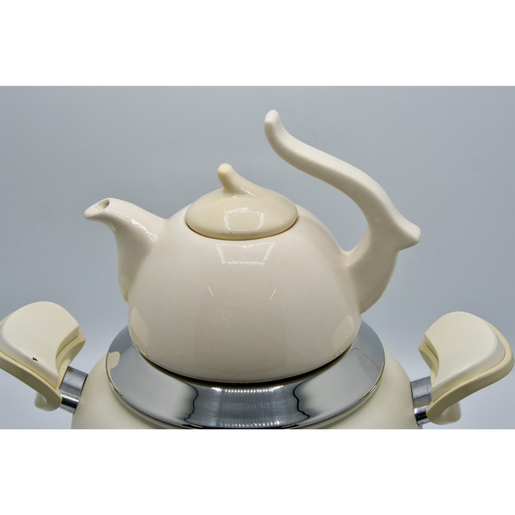 قوری 1 لیتری با درب و بسیار شیک و دارای وارمر چوبی است.