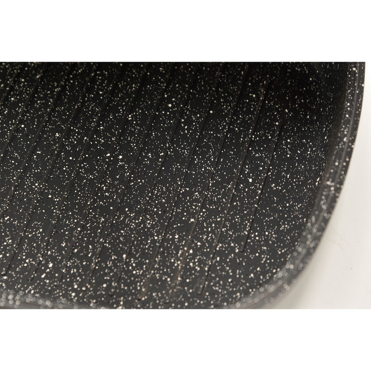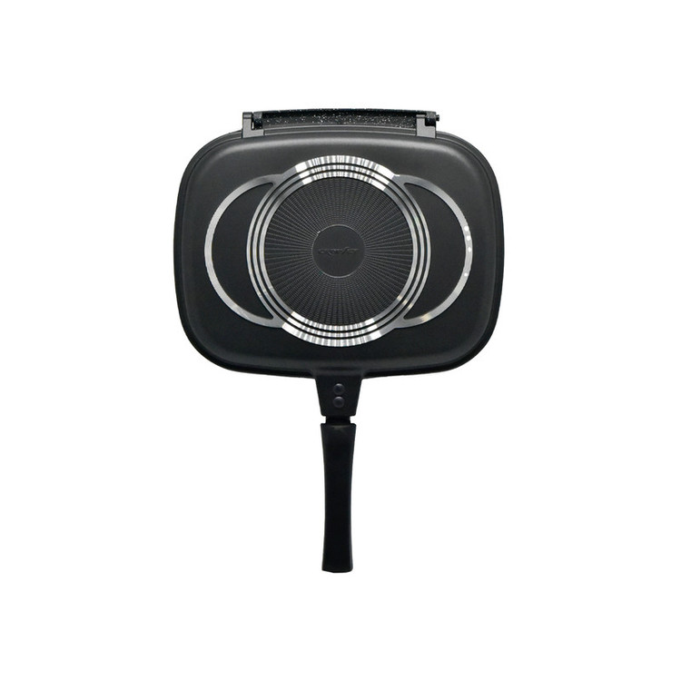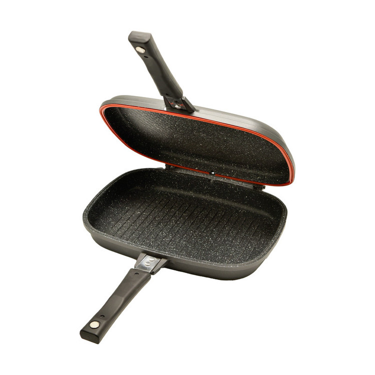 در این ظرف غذاهای رژیمی بدون روغن میتوان درست کرد.جنس این تابه بسیار بادوام است.پوشش خارجی این ظرف تماما گرانیت است و از دو طرف تابه میتوان به صورت جداگانه استفاده کرد.