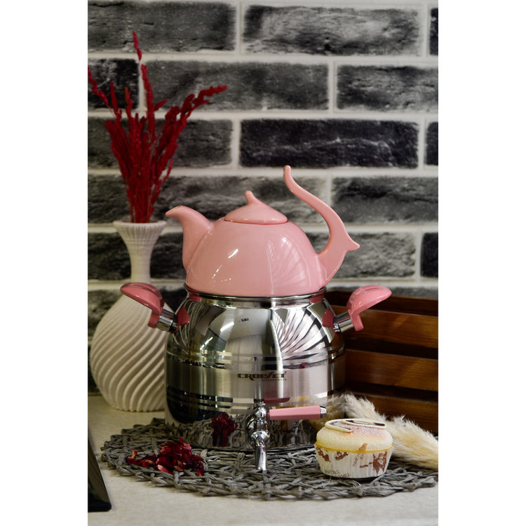 ست کتری و قوری کروپ ست با بدنه ای از استیل ضد زنگ , کفه چدن , ضخامت بدنه 1 میلیمتری و رنگ ست با قوری و با طراحی منحصر بفرد,ایدهآل برای آشپزخانه شماست .