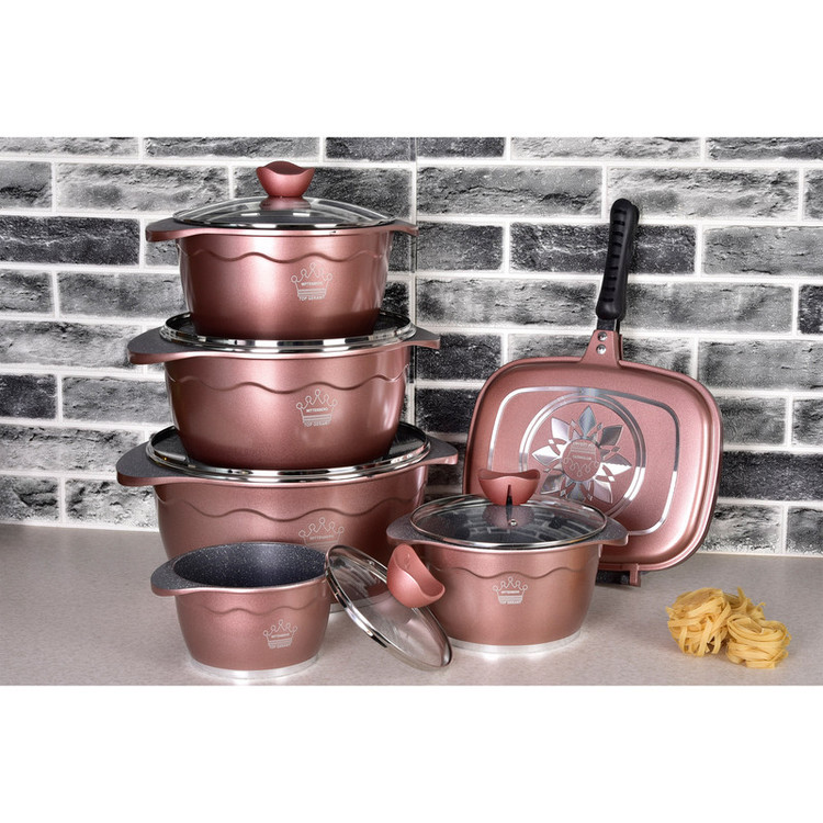 این سرویس شامل پنج قابلمه در سایزهای 32 و 16و 28 و 24 و 20 و یک تابه دو دسته سایز 28 .تابه رژیمی 32 و تابه مرغ و ماهی 42 می باشد.