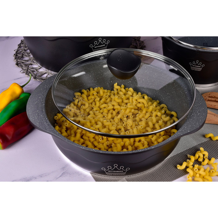 سرویس پخت و پز 17 پارچه WITTENBERG بسیار بادوام و کاربردی است به شکلی که در اکثر آشپزحانه های حرفه ای از این ظروف استفاده می شود. شست و شوی راحت و بهداشتی بودن این ظروف از دیگر مزایای آن به شمار می رود.