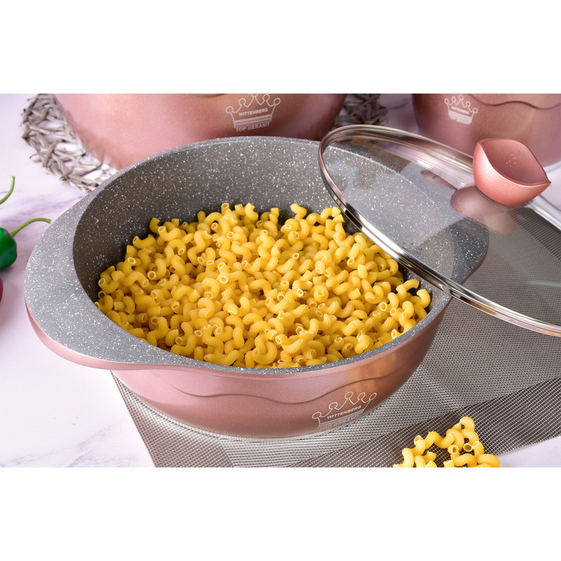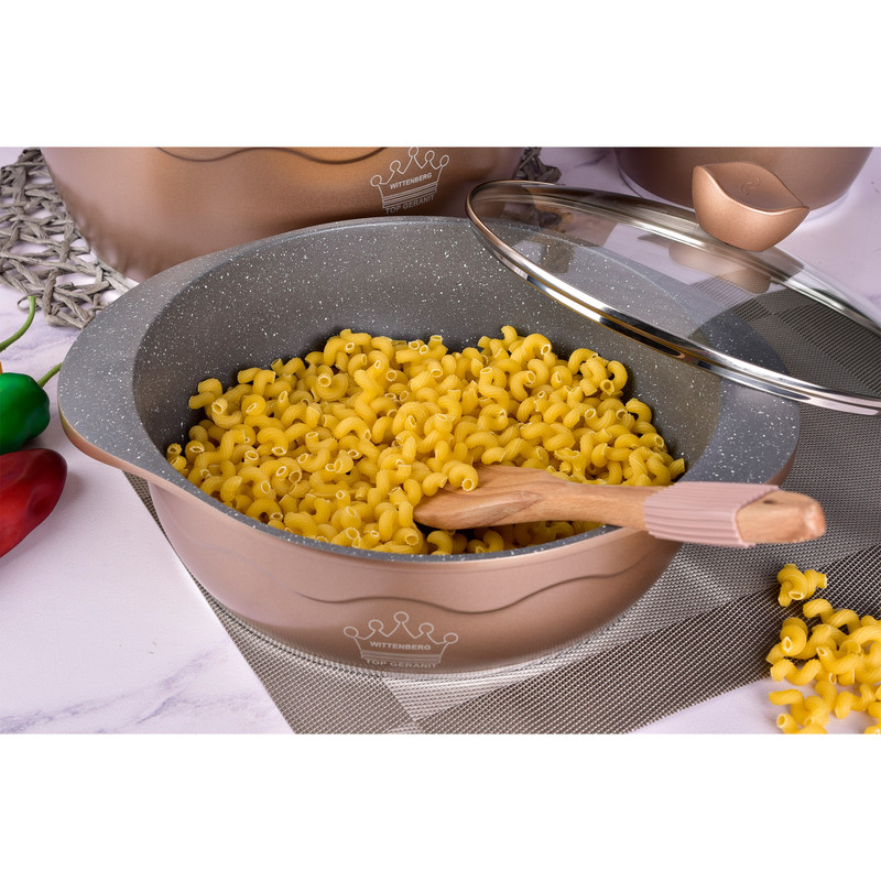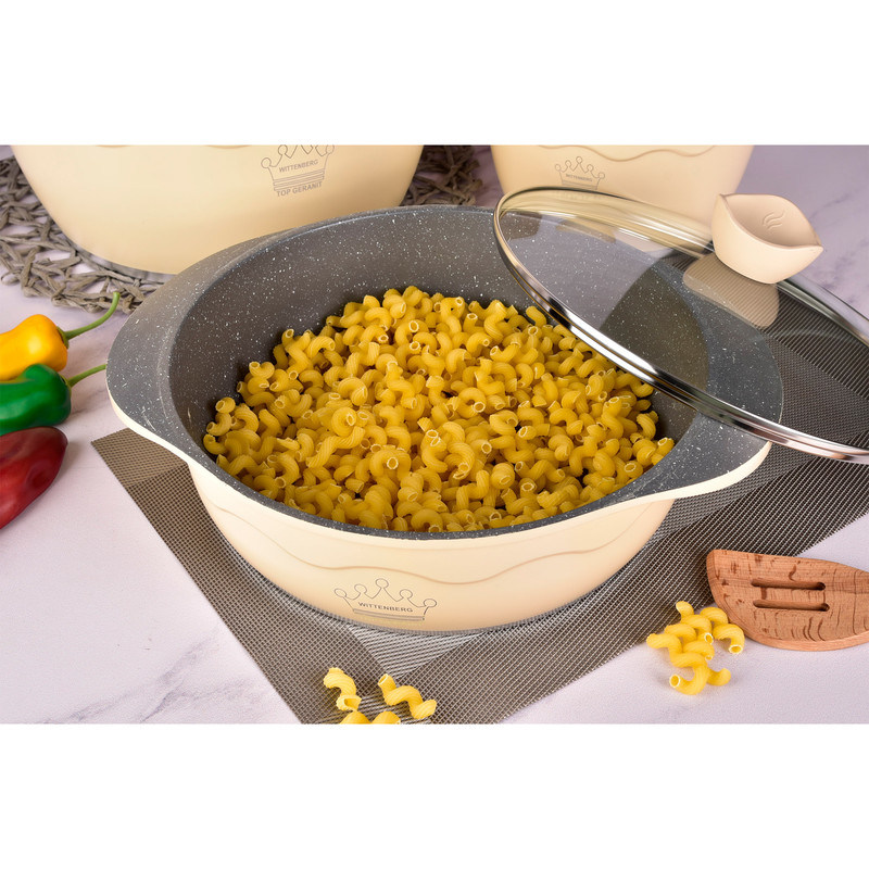 سرویس پخت و پز 17 پارچه WITTENBERG بسیار بادوام و کاربردی است به شکلی که در اکثر آشپزحانه های حرفه ای از این ظروف استفاده می شود. شست و شوی راحت و بهداشتی بودن این ظروف از دیگر مزایای آن به شمار می رود.