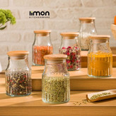 ادویه شیشه ای 230 میلی لیتر درب چوبی