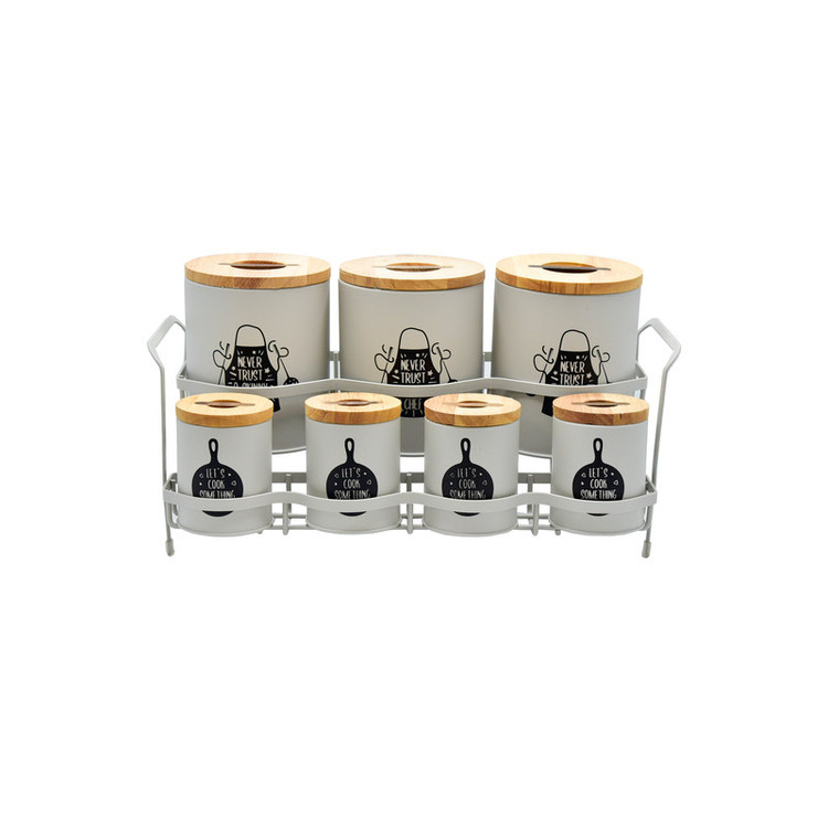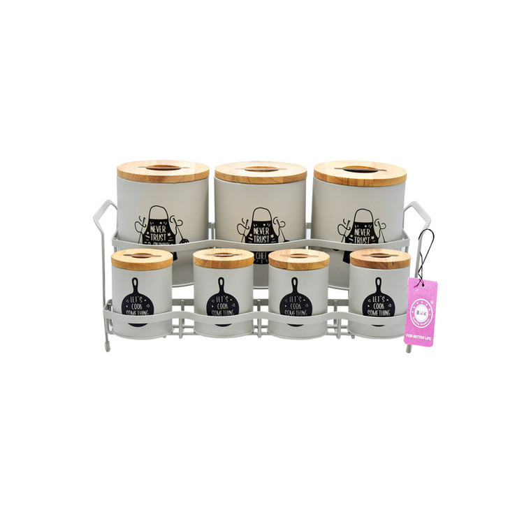 ست جای ادویه 8 پارچه بی.وی.کی مدل درب چوب S کد 863216