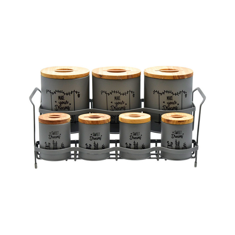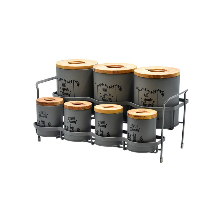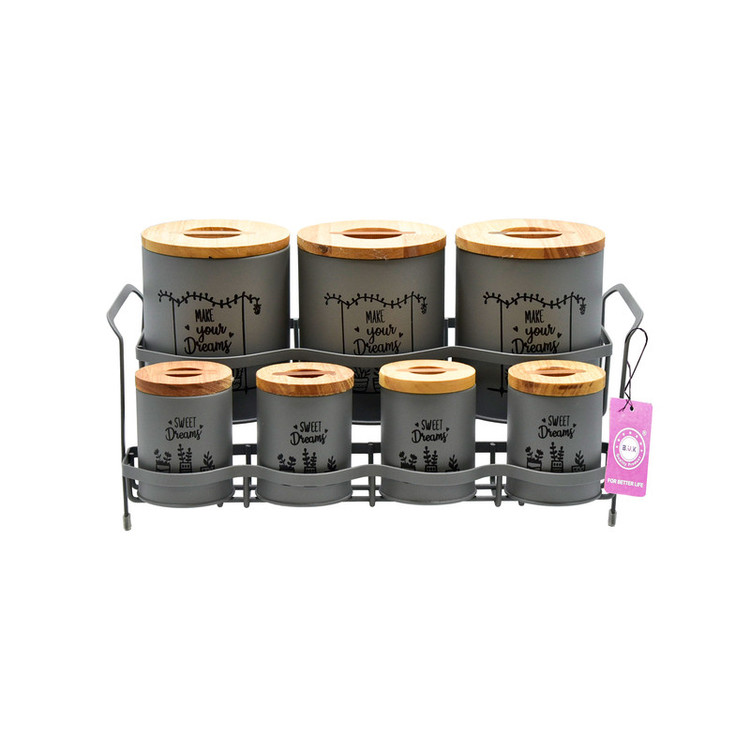 ست جای ادویه 8 پارچه بی.وی.کی مدل درب چوب T_K کد 863415