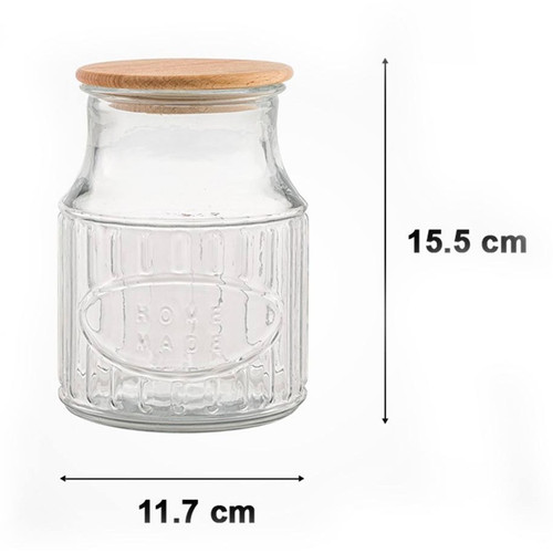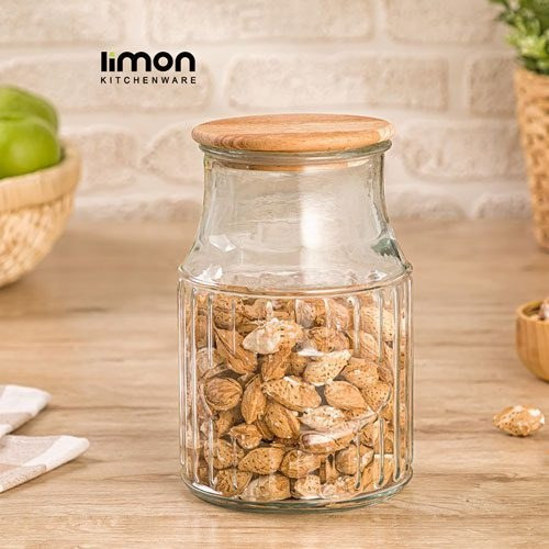 بانکه شیشه ای 800 میلی لیتر درب چوبی